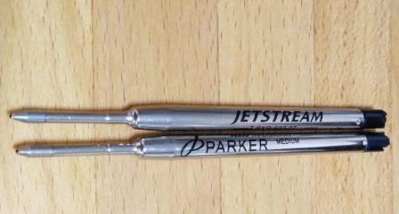 実際に文房具屋を3軒もはしごして「パーカー正規替え芯」を探しましたが、見つからないんですよね。